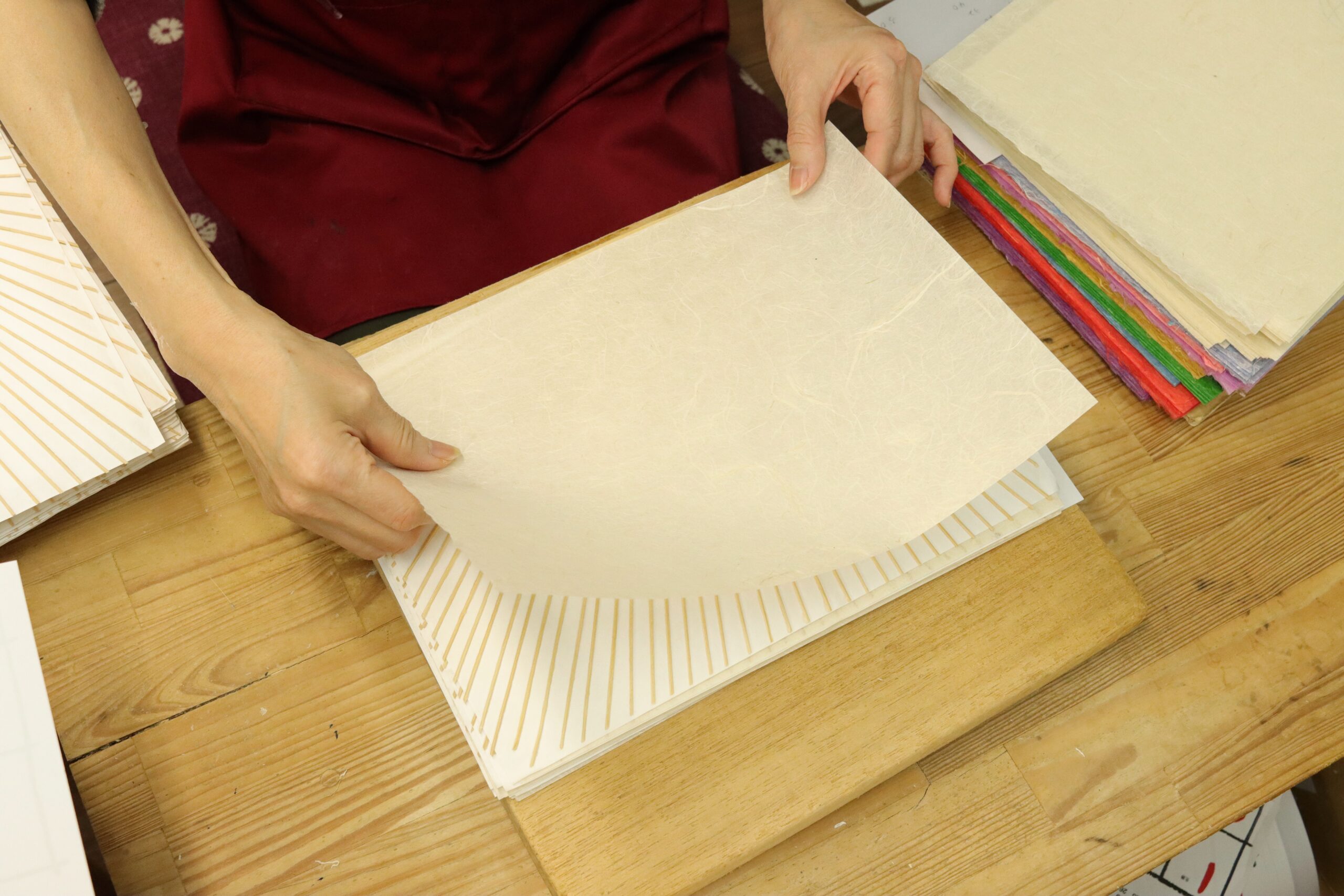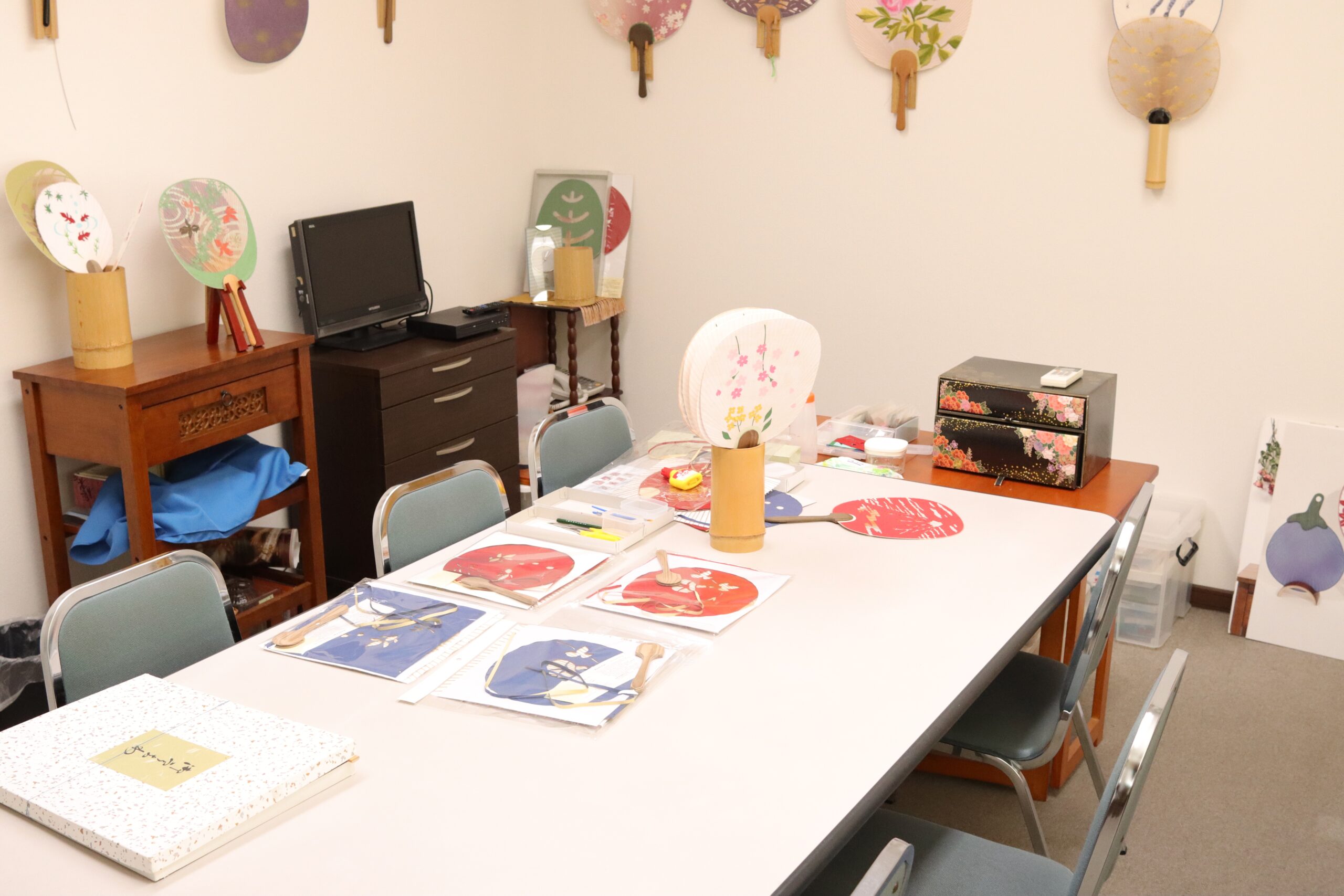 The second floor has a shop space, an office, and a workshop. There’s a corner where you can purchase a Kyoto fan as a souvenir. Kyoto fans come in lots of sizes and designs, so it’s a lot of fun to browse the shop before the experience. I assure you that you can come across your favorite one.