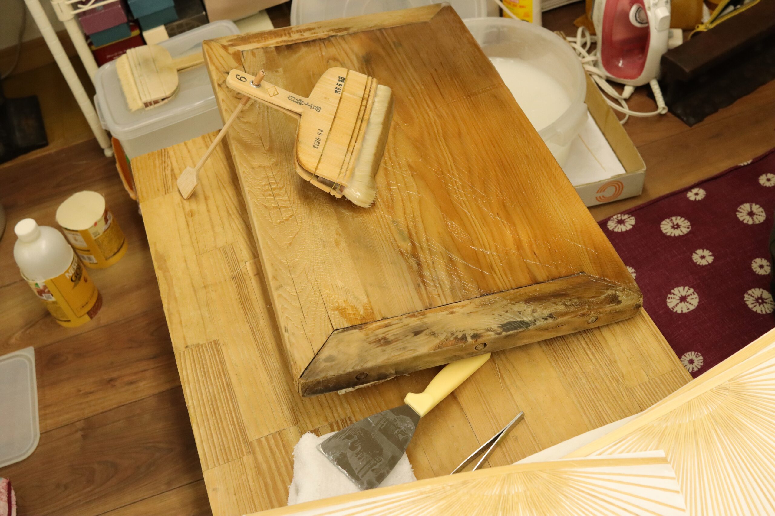 Then, paper is pasted onto the bamboo frames. This process requires a period of dying, for a couple of days, so the actual experience I had didn’t involve this task.