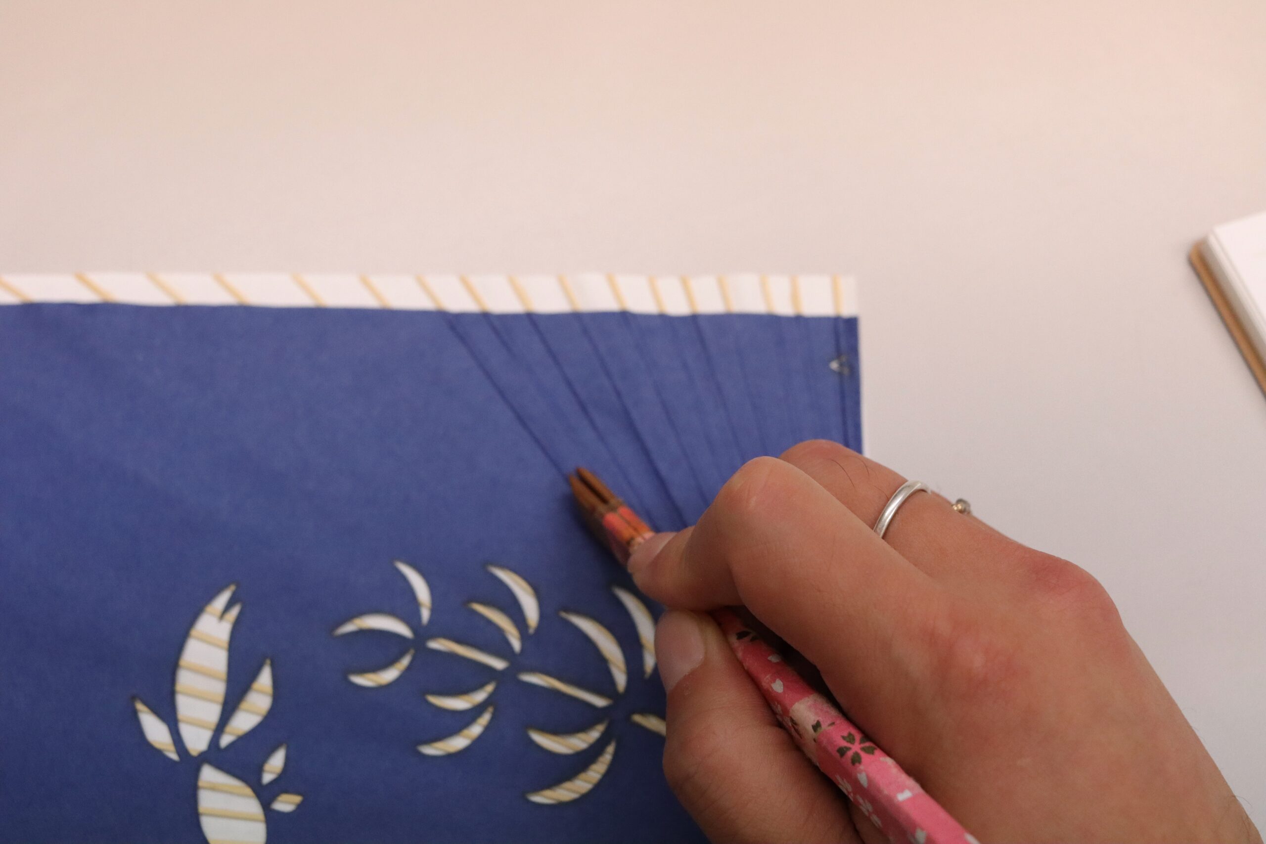 Look at my paper fan in the making. It looks more solid, doesn’t it? The Netsuke step surely brought life to it.
