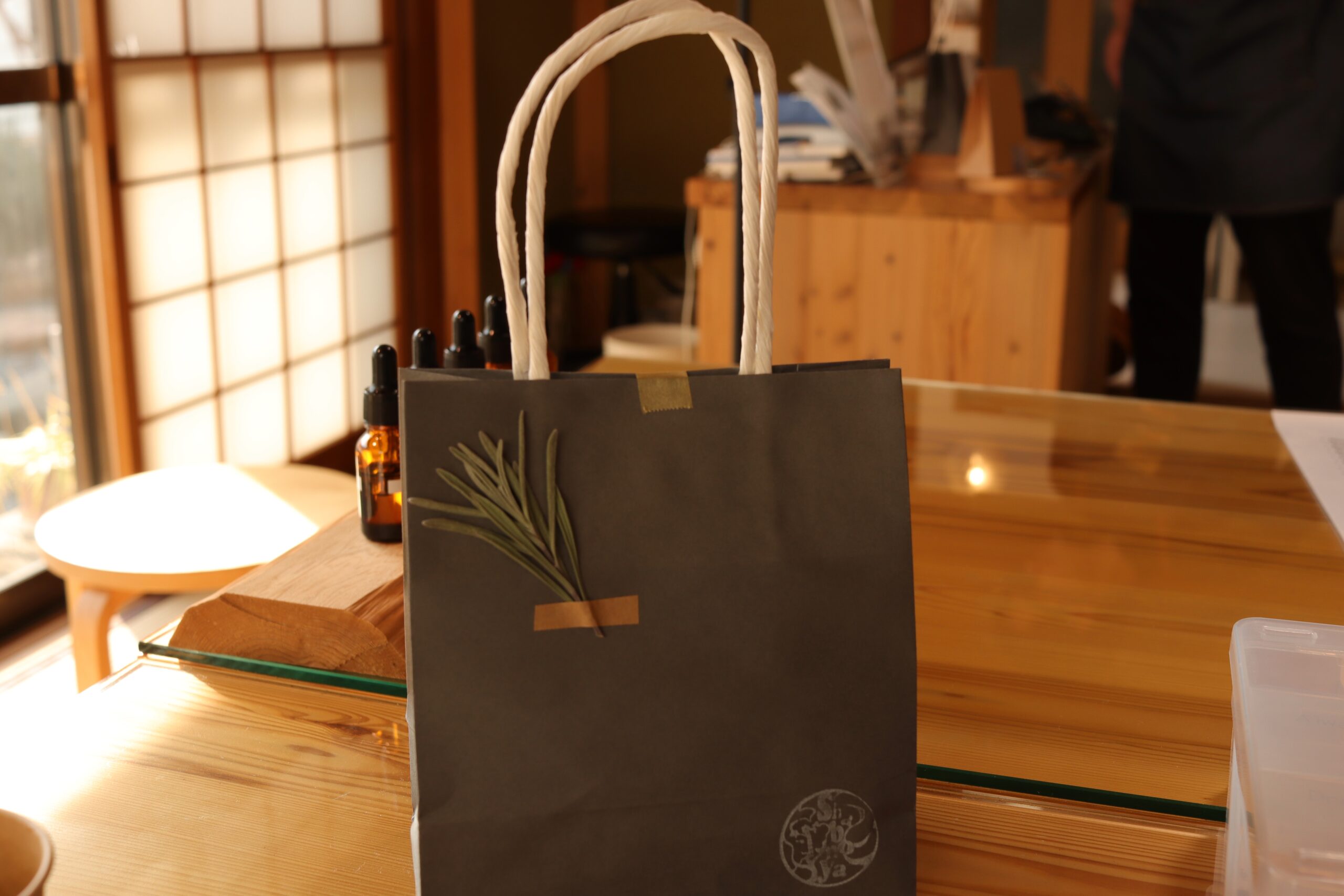 After the experience, the shop clerk will put your perfume in a paper bag.